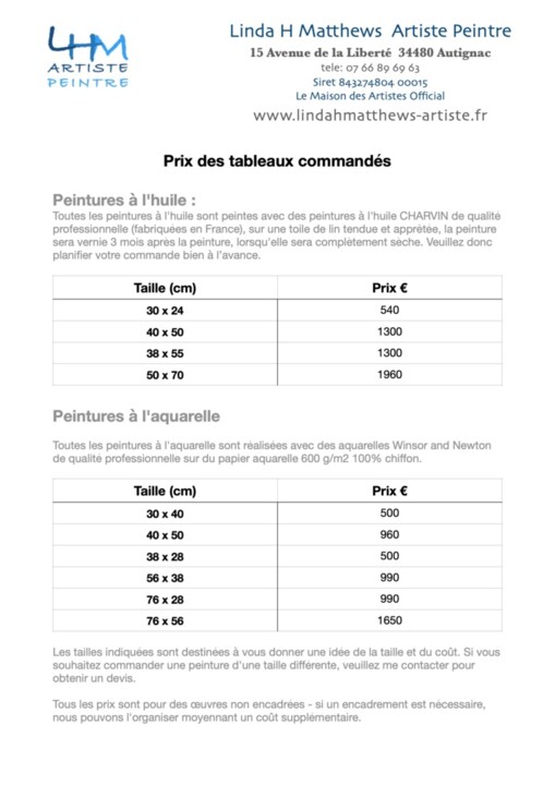 The materials I use are professional quality, whether it be Oils, watercolour, drawing or pastels. The painting supports are prepared to archival standards, and oils will be varnished to protect and bring out the luminosity of the colours.